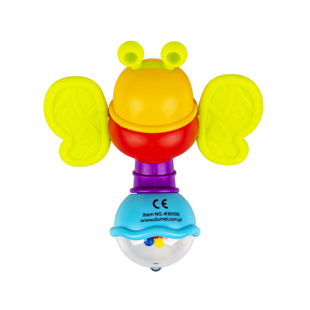Kompaktowa zabawka wyposażona w szereg ciekawych funkcji, które zabawią maluszka. Pszczółka potrafi terkotać i to na dwa różne sposoby. Aby usłyszeć ten zabawny dźwięk, wystarczy przekręcić kuleczkę, stanowiącą zarazem uchwyt zabawki, lub główkę pszczółki. Miękkie skrzydełka zabawki zdobią wypustki o nieregularnych kształtach, dzięki czemu świetnie sprawdzą się one w roli gryzaka. Za sprawą kompaktowego rozmiaru, pszczółka może towarzyszyć maluchowi zarówno w domu, jak i w podróży.